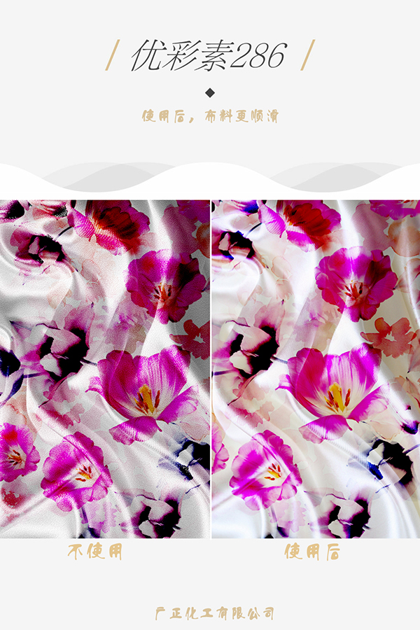 基于這個基礎,小編還發現,用了一種叫做數碼印👩🏿❤️💋👨🏽花增色劑、數碼印花鮮豔劑、數碼印花上漿劑,這個 數碼印花增色劑 是法國進口,在國内首發的一個産品,這個産品名稱叫做優彩素286 ,成本極低的迅速提高數碼印花效果的國際新材料🛀🏼,能令數碼👼🏾印花輪廓更高清,不會化開,顔色更靓麗。而且它能夠👩🏼❤️👨🏾徹底解決手感發硬的問題,讓你的産品觸感是一🔞種享受,愛的無法釋手,重點的是,優彩素286的使用方法非常的簡單👩🍼,可以即開即用,讓生😝産工人非常容易上手,大大節省人力、時間,讓數碼印花産能馬上翻倍。