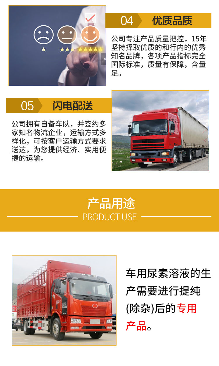 心連心車用尿素原料,是心連心公司農業尿素的升級産品。是在農業尿素生産線的基礎上專門針對車用尿☠️素溶液的✋生産需要進行提純(除雜)後的專用産品。用心連心車用尿素原料生💁🏼♀️産車用尿素溶液,無需其他的提🙈純過程,隻需将原料和超純水按照1:2的比例配制、溶解和過濾即可,所得産品可同😺時滿足國際、國家标準的指标要求。